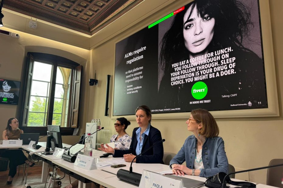 The second day of the AI and Algorithms at the Workplace workshop at the European University Institute (EUI) shifted focus from individual research projects to broader debates and applications. In the morning, Andrea M. Herrmann (project’s PI) provided a synthesis… Read More »Seminar ‘AI and Algorithms at the Workplace’ at EUI Florence (06 May 2025)